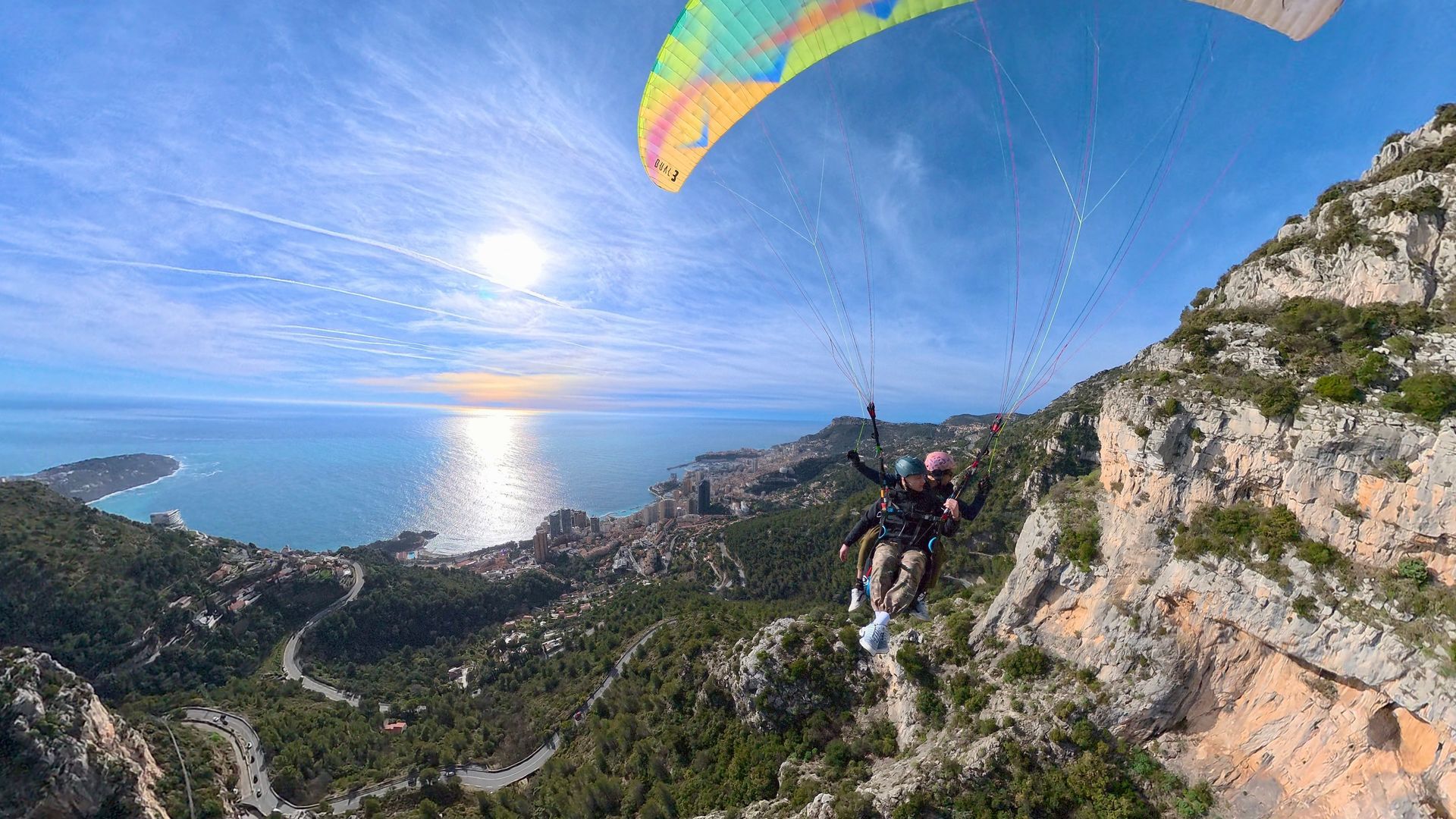 Assis confortablement dans votre sellette, vous profitez d'une vue à 360° sur la Méditerranée, Monaco, Menton, et par temps clair, le Mercantour et même la Corse. Le silence, la sérénité et la beauté du paysage créent un moment hors du temps.