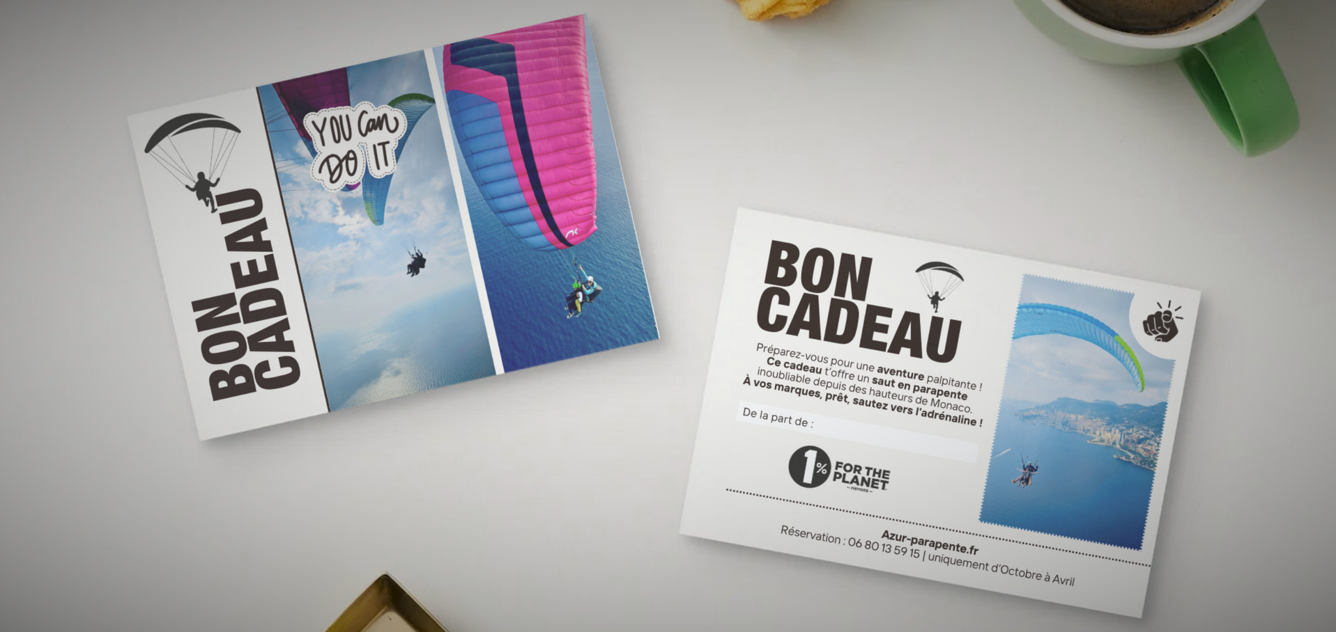 Garantir une expérience facile et fluide, chaque visuel de votre bon cadeau Azur Parapente se compose de deux parties :